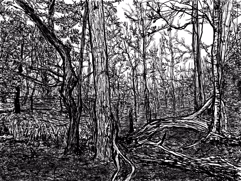 Een bos van inktlijnen (Veluwezoom)